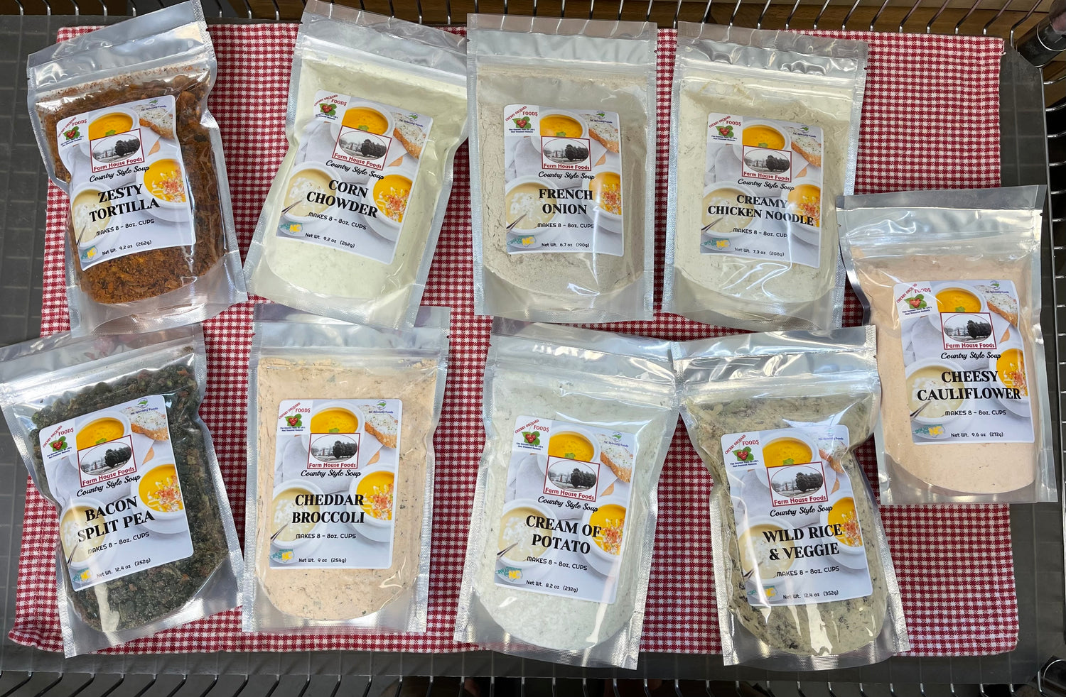 Our Farm House soup mixes are a great way to have soups on hand that are very easy to make. Most mix with just water, some also use milk. Taste just like homemade!